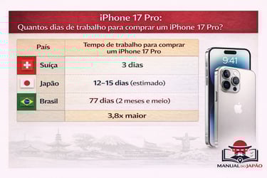 Um exemplo que circulou nas redes sociais em 2026 compara o poder de compra entre países usando o iPhone 17 Pro :