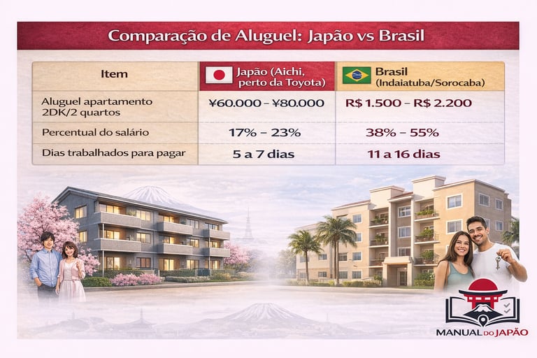 Interpretação: O aluguel consome uma fatia muito menor do salário no Japão, mesmo sendo em valores nominais mais altos.